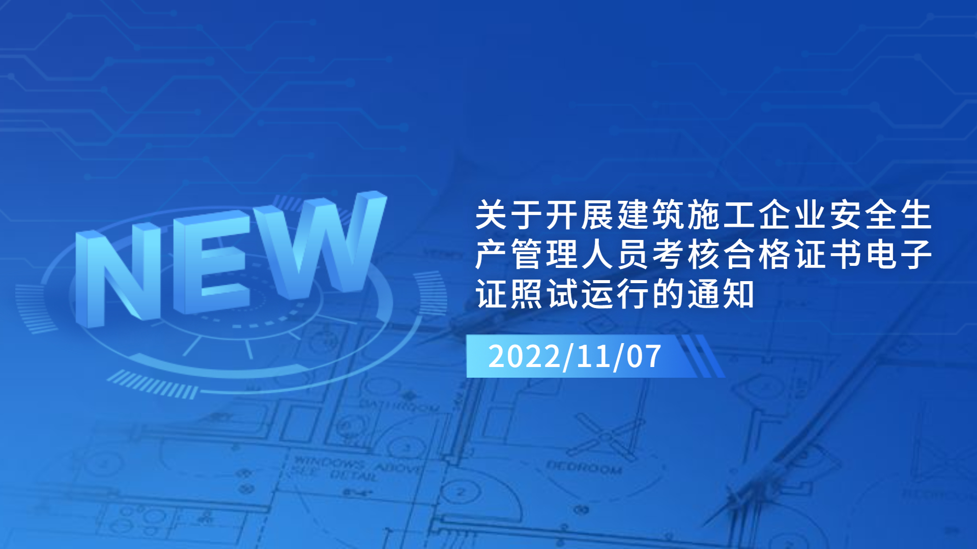 各省、自治区住房和城乡建设厅,直辖市住房和城乡建设(管)委,新疆生产建设兵团住房和城乡建设局: 为进一步深化“放管服”改革,贯彻落实国务院关于加快推进电子证照扩大应用领域和全国互通互认的要求,提升建筑施工安全监管数字化水平,决定开展建筑施工企业安全生产管理人员考核合格证书电子证照(以下简称电子证照)试运行。现将有关事项通知如下: 一、试运行范围 自2022年12月15日起,在河北、吉林、广东