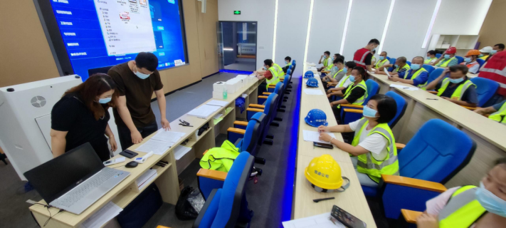 近日,市建管中心牵头组成广州市2022年建筑施工安全体验培训工作督导组,先后前往天河区、白云区、南沙区、海珠区等“送教下工地”安全体验馆检查督导落实广州市2022年建筑安全体验培训质量和防疫措施等情况。(督导组现场检查) 督导组现场仔细检查了体验学员签到表、体温检测表、场馆设备、学员体验情况、防控防疫设备和突发事件隔离室等情况,并针对培训情况、近段时间天气和疫情等问题,对安全体验培训机构重点部署