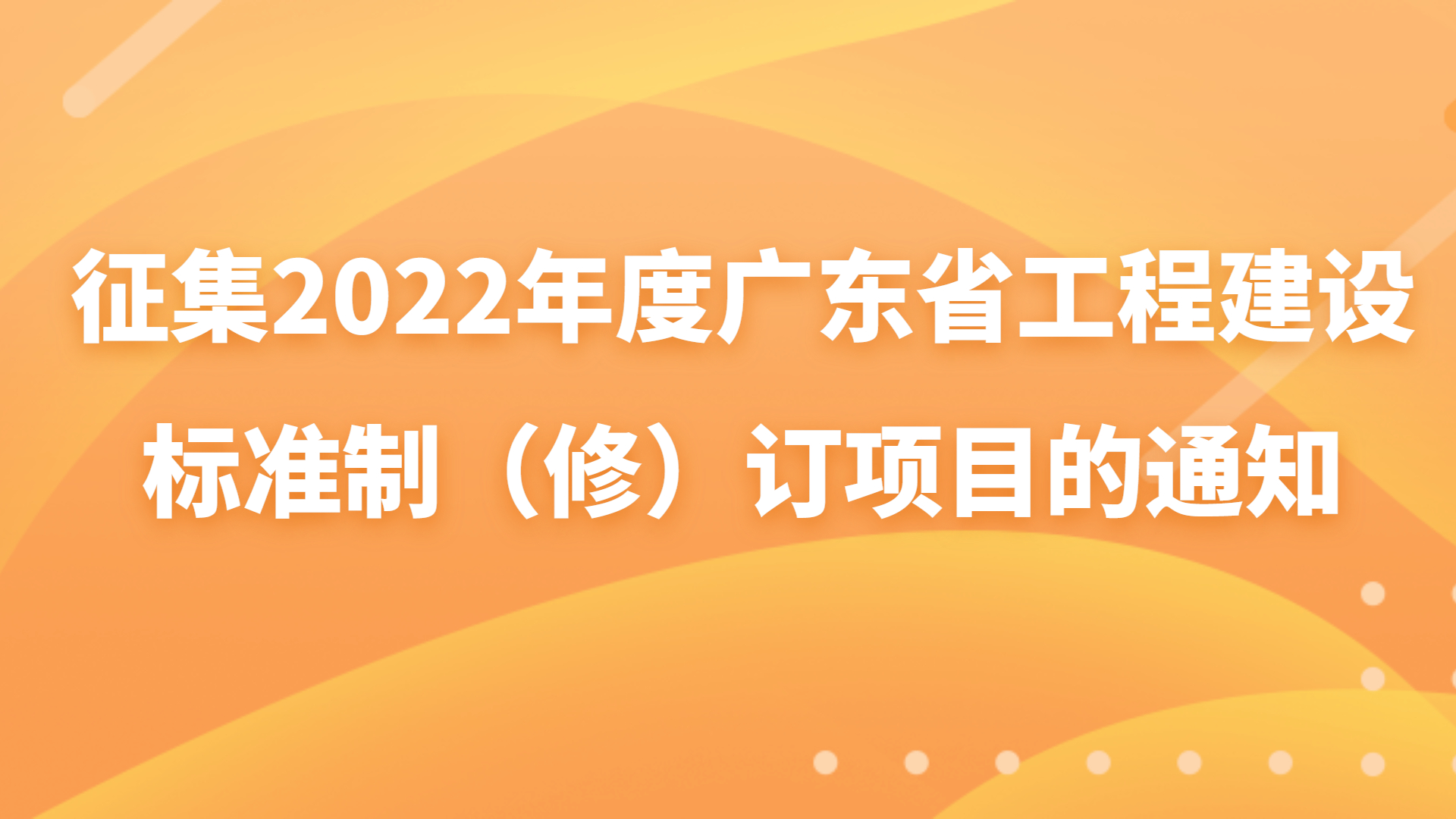 各地级以上市住房城乡建设、城管、市政、园林、环卫、水务主管部门,有关行业协(学)会,各有关单位: 根据《中华人民共和国标准化法》,为完善广东省工程建设地方标准体系,经研究,决定开展2022年度广东省工程建设标准标准制(修)订项目征集工作。有关事项通知如下: 一、申报范围 申报项目应紧密围绕我省住房城乡建设高质量发展相关要求,重点支持装配式建筑、建筑节能、绿色建筑、绿色建材、机制砂应用、BIM